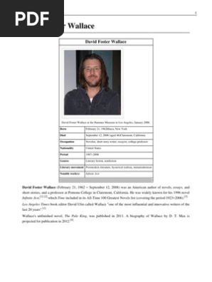 David foster wallace think of the old cliché about the mind being an excellent servant but a terrible master. Logical validity is not a guarantee of truth david foster wallace infinite jest david foster wallace was not only a writer of fiction and non fiction but an amateur mathematician as well. There is some unavoidably deep seated sadness here as well.