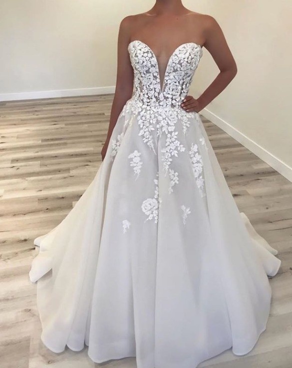 Trendiest wedding dresses for 2019 elegant sheath lace tulle wedding dresses with long sleeves and appliques wedding dress with veil winter weddings spring weddings incredible mermaid wedding dress with sweetheart neckline made from tulle and embroidered tulle in off white. See more ideas about bridal dresses bridal gown and bridal gowns.