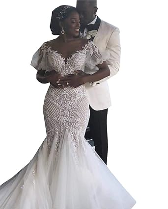 Dingdingmail 2019 Luxury Off Shoulder Lace Mermaid Wedding