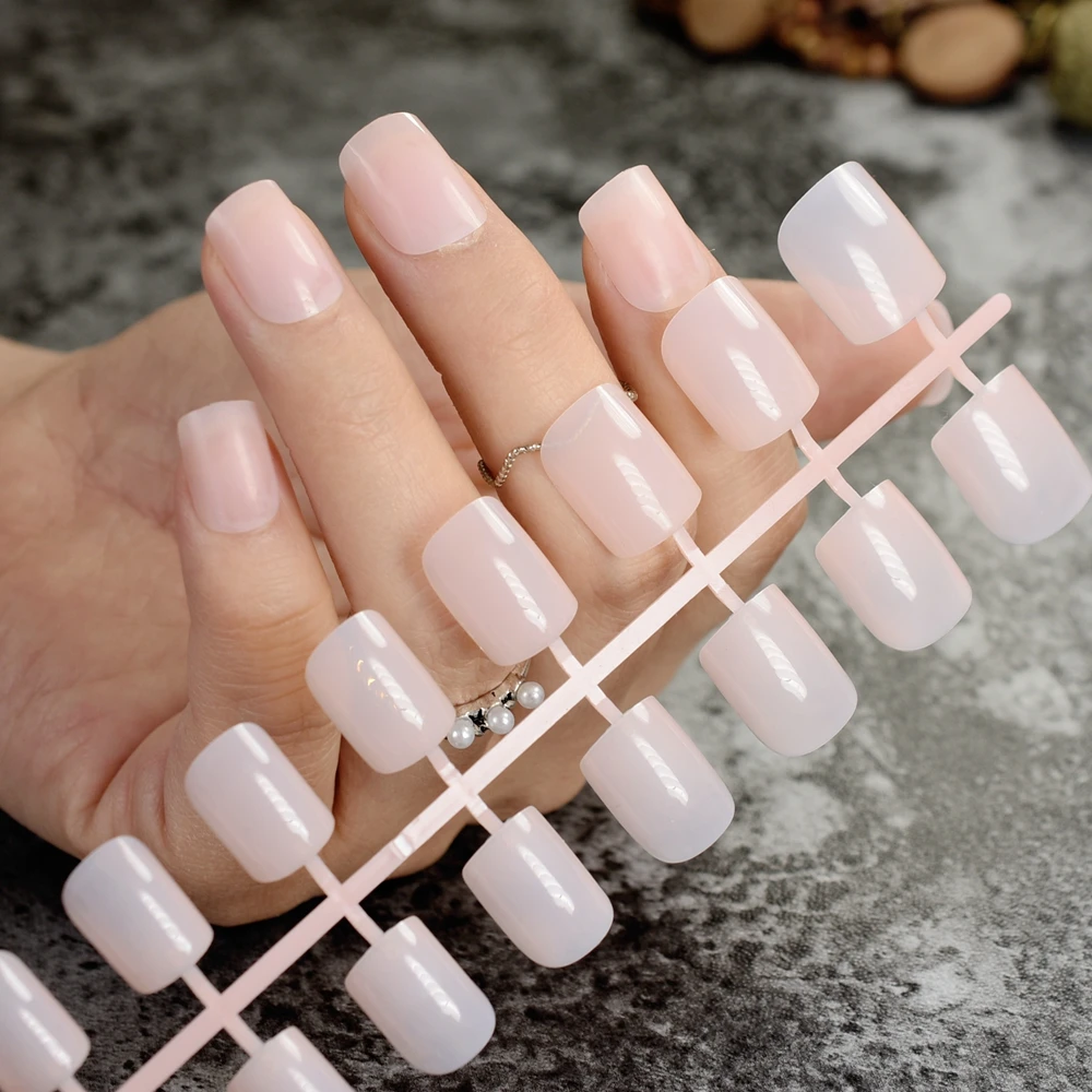 Us 099 Medium Square Fake Nails Summer Clear Nude False Nails Tips Cute Stylish Simple Arts Acrylic Decoration Tip In False Nails From Beauty