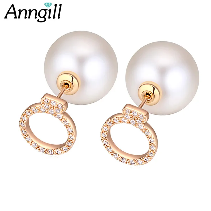 New Design Circle Stud Earring Jewelry Gold Color Cz Stone Double