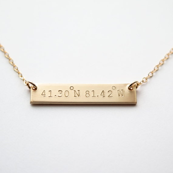 Coordinates Thick Gold Bar Necklace Double Sided With Custom Etsy