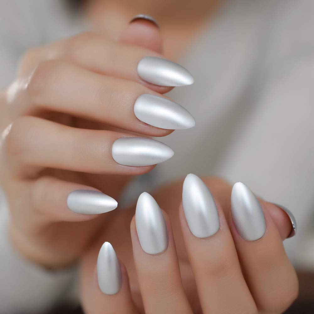 Amazon Com Satin Glossy Color Nails Almond Light Silver