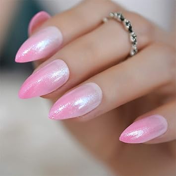 Amazon Com Jelly Pink Glitter False Nail Almond Nail Art