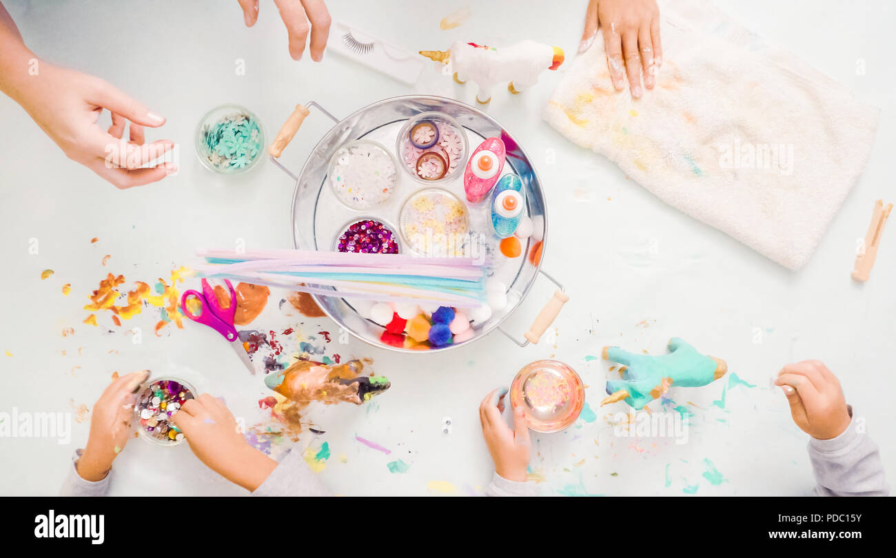 Step By Step Little Girls Painting Paper Mache Unicorn With